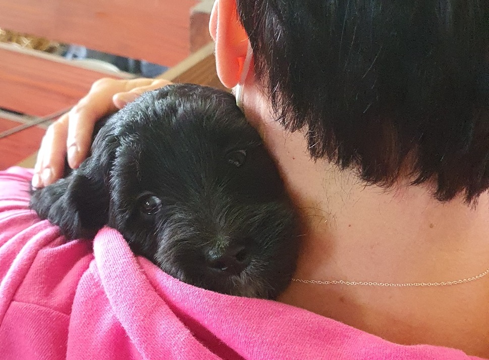 Für unsere Rentnerin einen kleinen Pusch fürs Wohlbefinden (Golden Doodle) geboren am 22.02.2021 eingezogen am 17.04.2021, an diesem Tage wurde auch der Namen gefunden. Unsere Tochter hat Entschieden Femi.